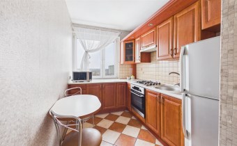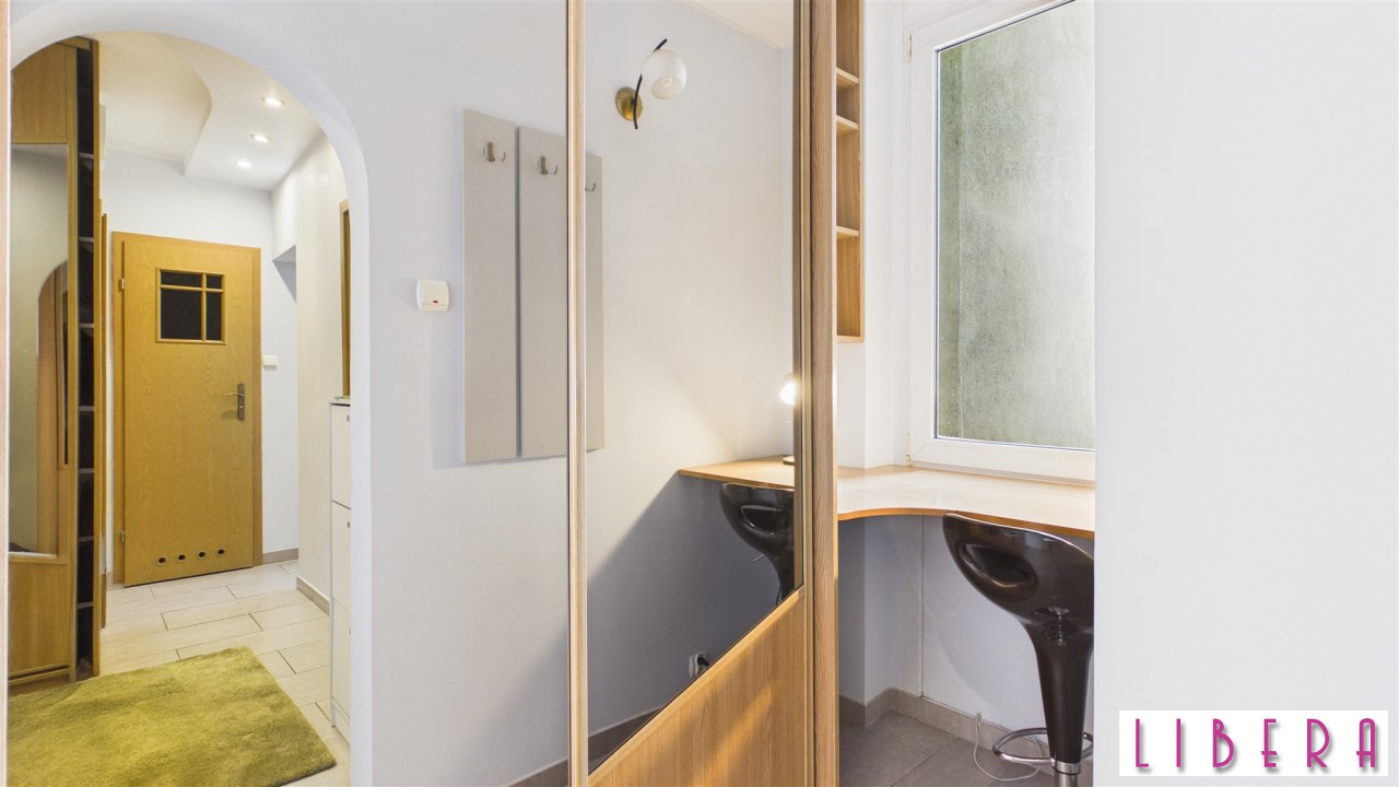 Solidnie wykończone: kuchnia w tradycyjnej zabudowie i podstawowym sprzętem AGD, łazienka z prysznicem, 3 zabudowy typu KOMANDOR z pewnością ułatwią przechowywanie, oryginalna stolarka wewnętrzna, odświeżone i odmalowane.