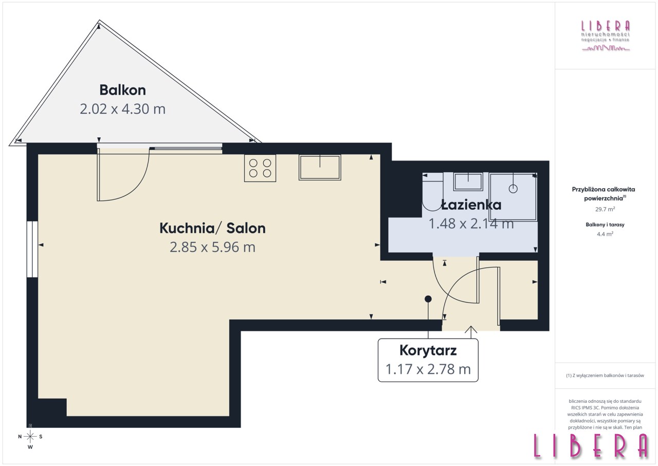 * powierzchnia około 29,7 m2,